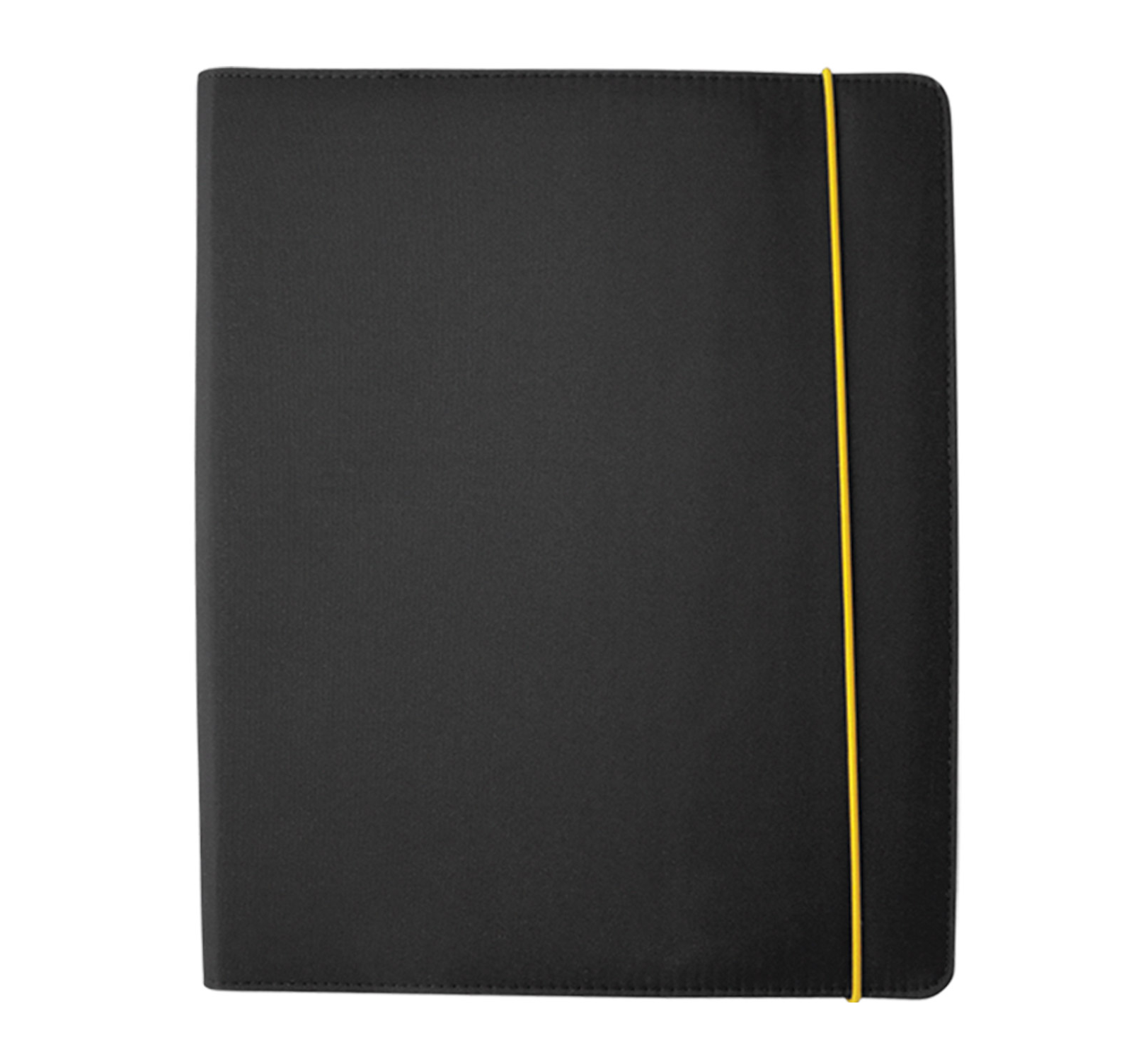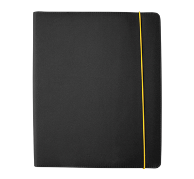 A4 Polyester document folder with elastic closure. Includes pen loop, inner document compartments, and A4 20 sheets lined notepad.