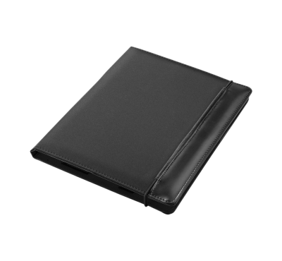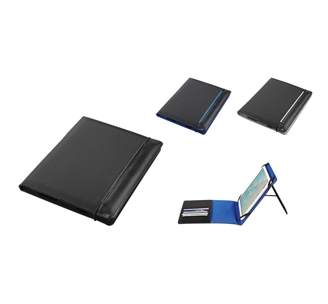 PU leather and polyester tablet holder 11" with elastic closure, includes inner document compartments.