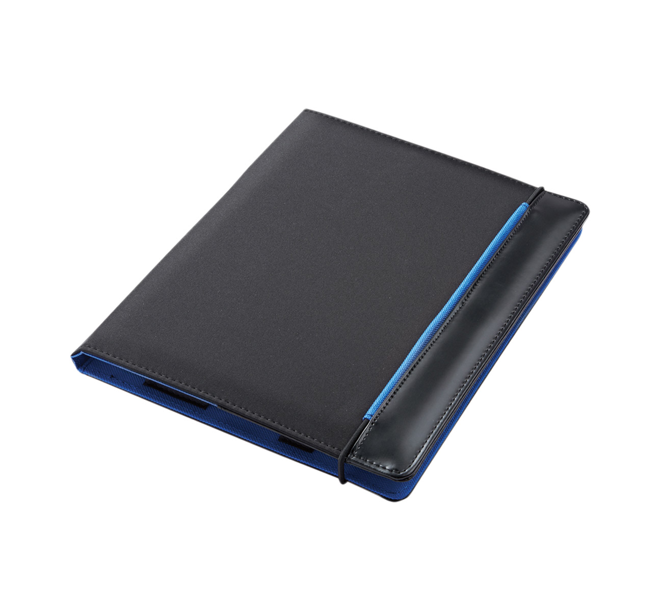 PU leather and polyester tablet holder 11" with elastic closure, includes inner document compartments.
