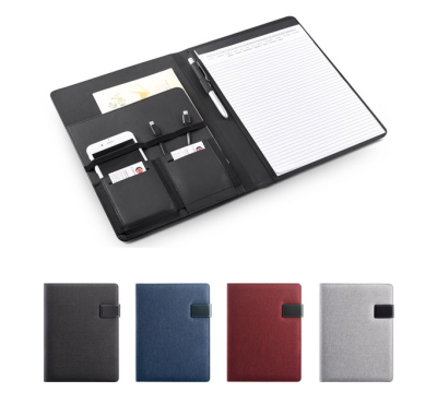 Папка с бележник А4, 20 листа с редове, цвят на хартията бял, място за химикалка и документи, магнитно закопчаване.