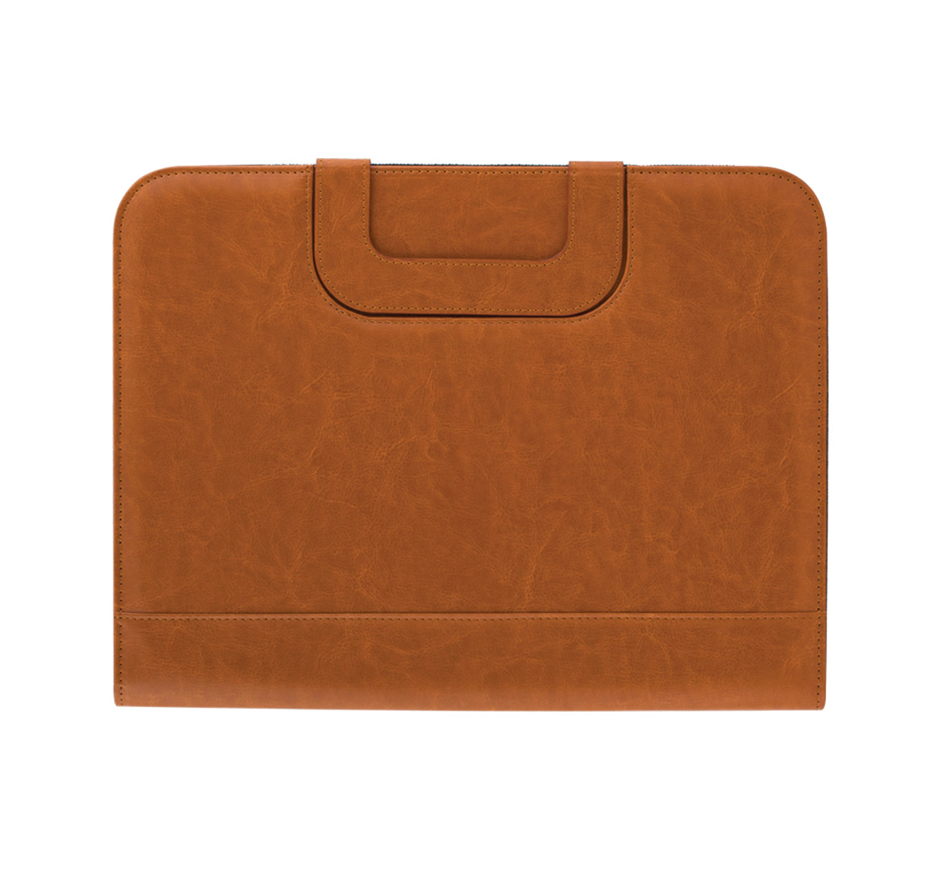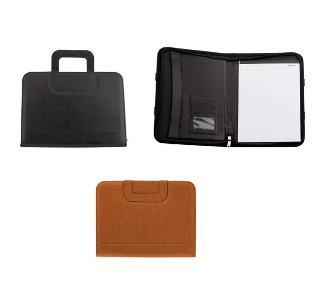Конферентна папка с цип, дръжки с магнитно прибиране, бележник А4, 30 листа с редове, цвят на хартията бял, място за документи, карти и визитки.