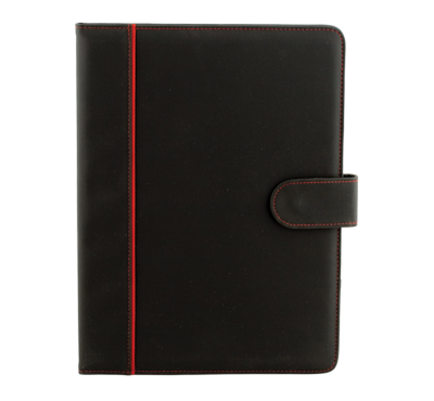 A4 PU leather document folder with button closure. Includes pen loop, inner document compartments, and A4 20 sheets lined notepad.