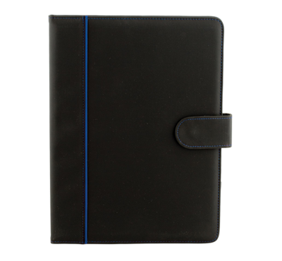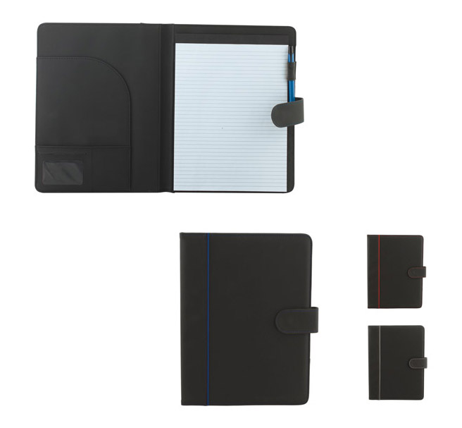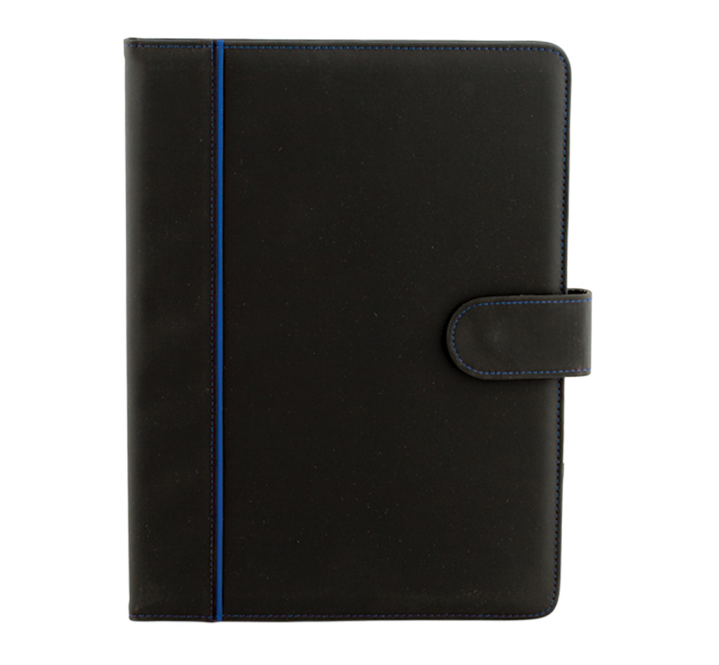 A4 PU leather document folder with button closure. Includes pen loop, inner document compartments, and A4 20 sheets lined notepad.