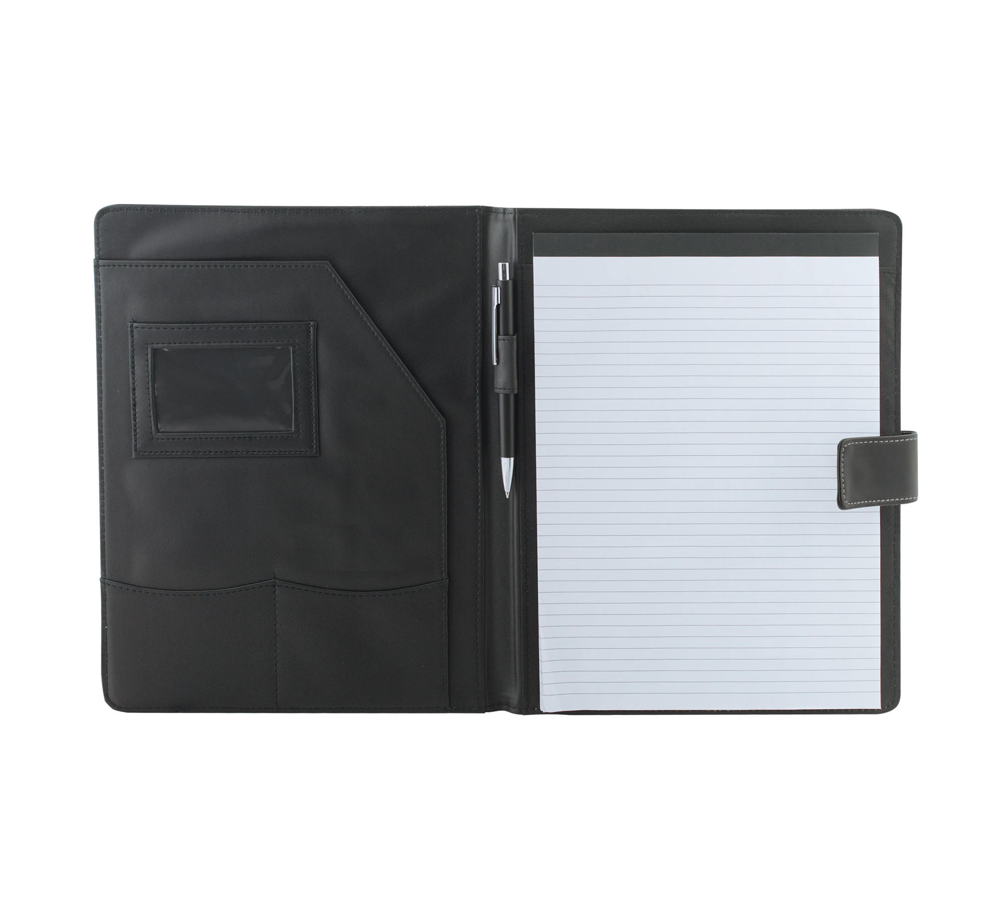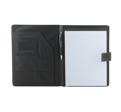 Папка с бележник А4, 20 листа с редове, цвят на хартията бял, място за химикалка и документи, закопчаване с копче.