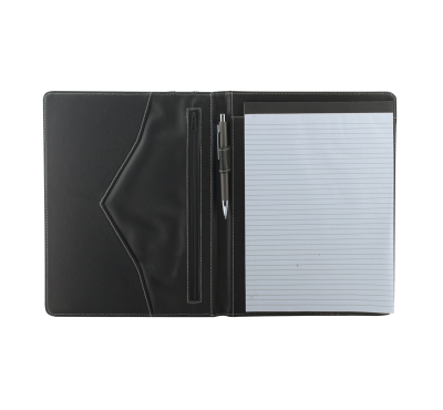 A4 PU leather document folder includes pen loop, inner document compartments, and A4 20 sheets lined notepad.