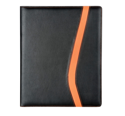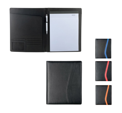 A4 PU leather document folder, includes pen loop, inner document compartments, and A4 20 sheets lined notepad.