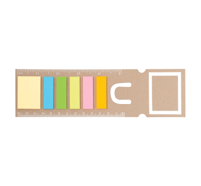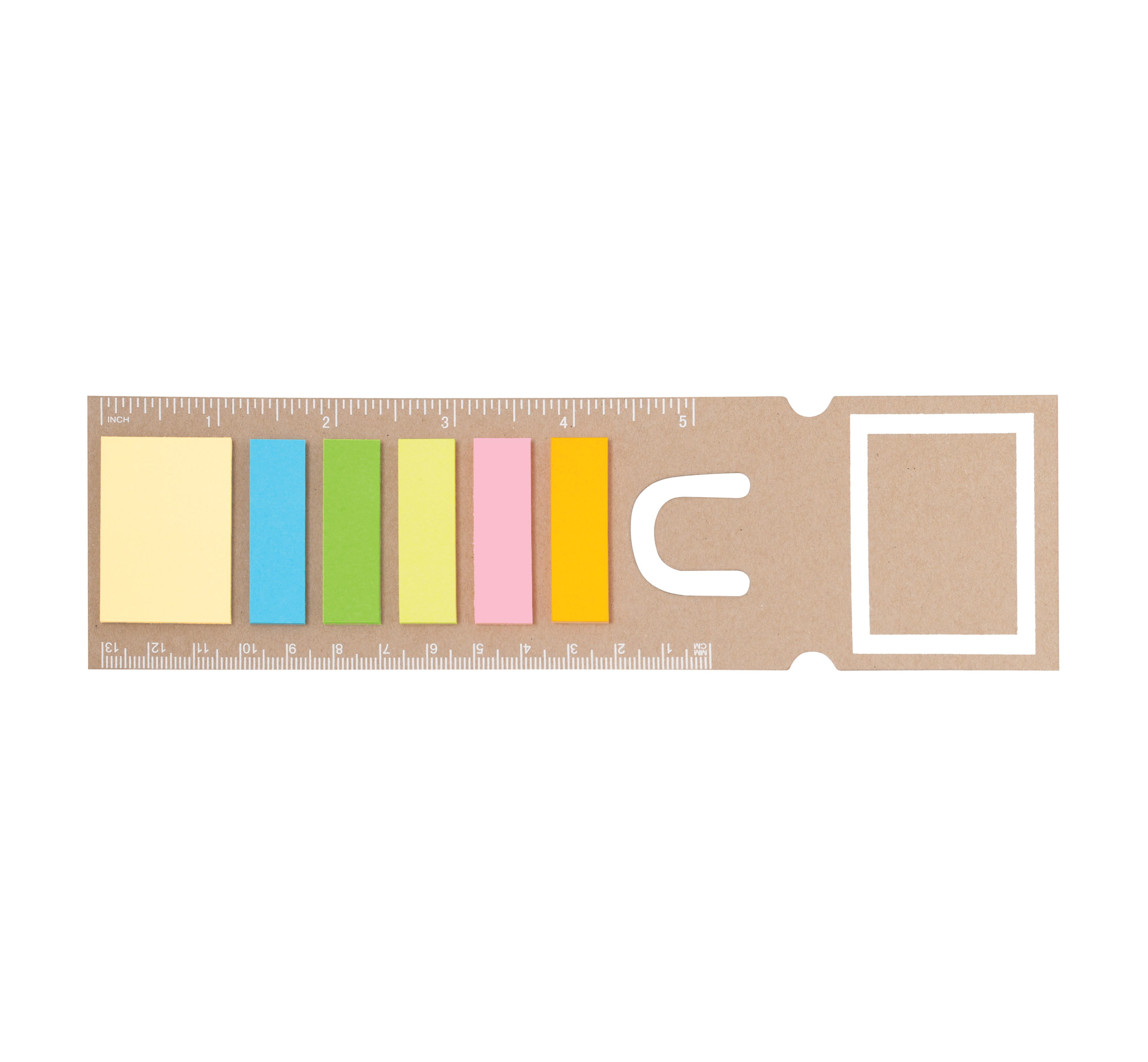 Bookmark with sticky notes in 6 colors, and a recycled ball pen.