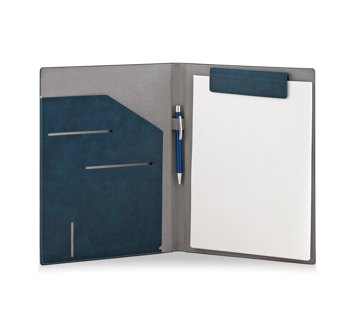 Папка с магнитен клипборд, място за химикалка, документи и визитки.