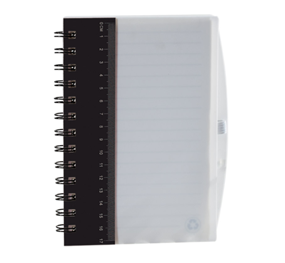Тефтер с пластмасова корица и линия, 70 листа с редове, цвят на хартията слонова кост.