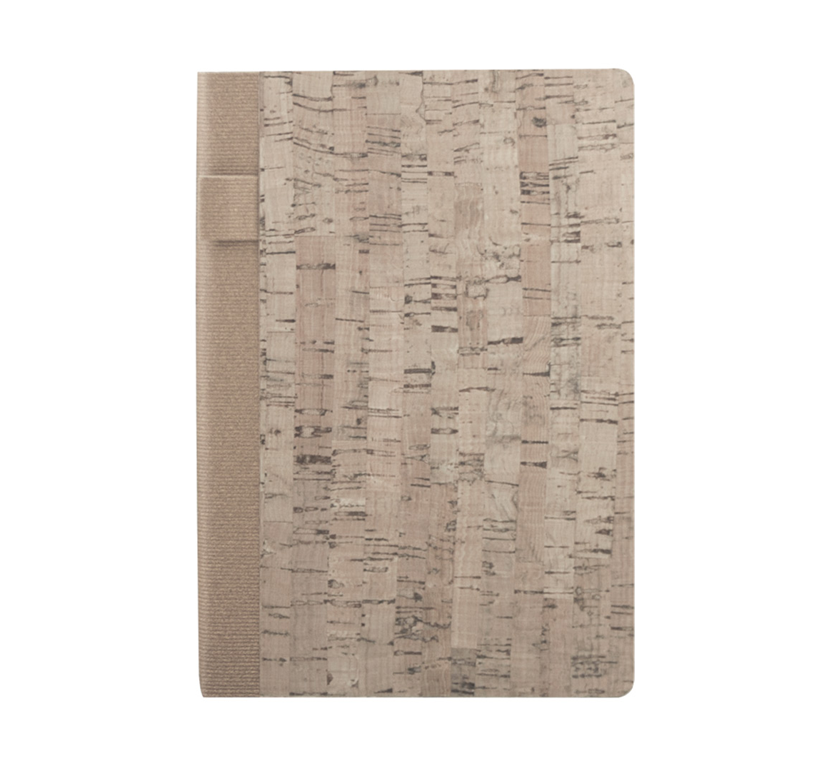A5 Notebook with natural cork hardcover, includes 96 sheets of ivory-colored lined paper, a matching coloured ribbon, and pen loop. Material: cork, paper.