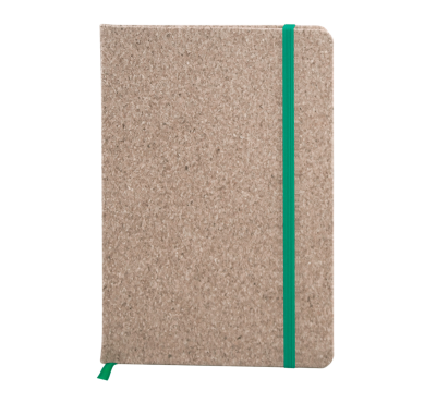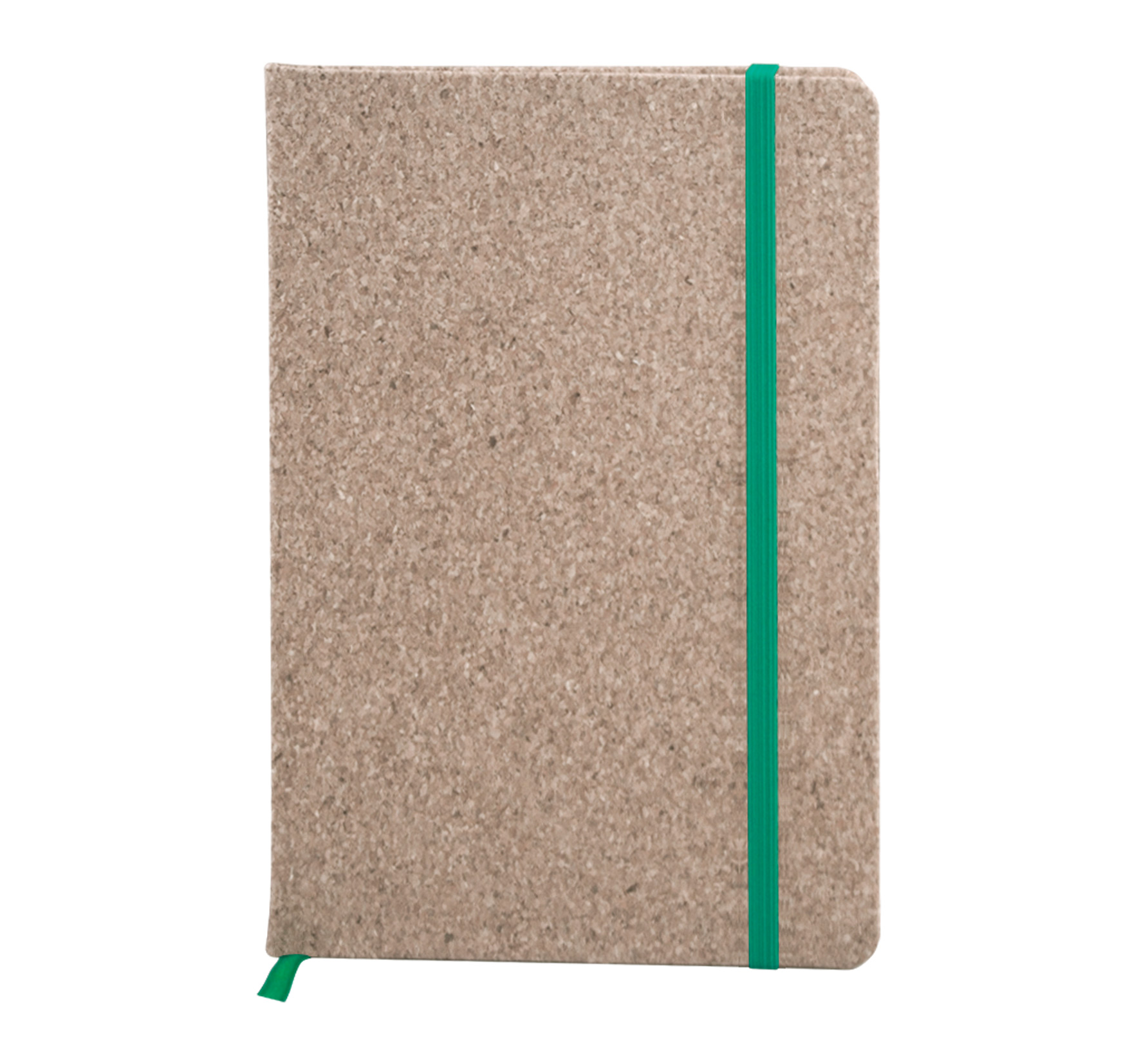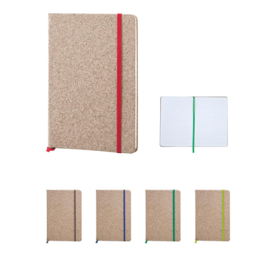 Тефтер A5 с коркови корици, ластик и разделител, 80 листа с редове, цвят на хартията слонова кост, твърда корица.