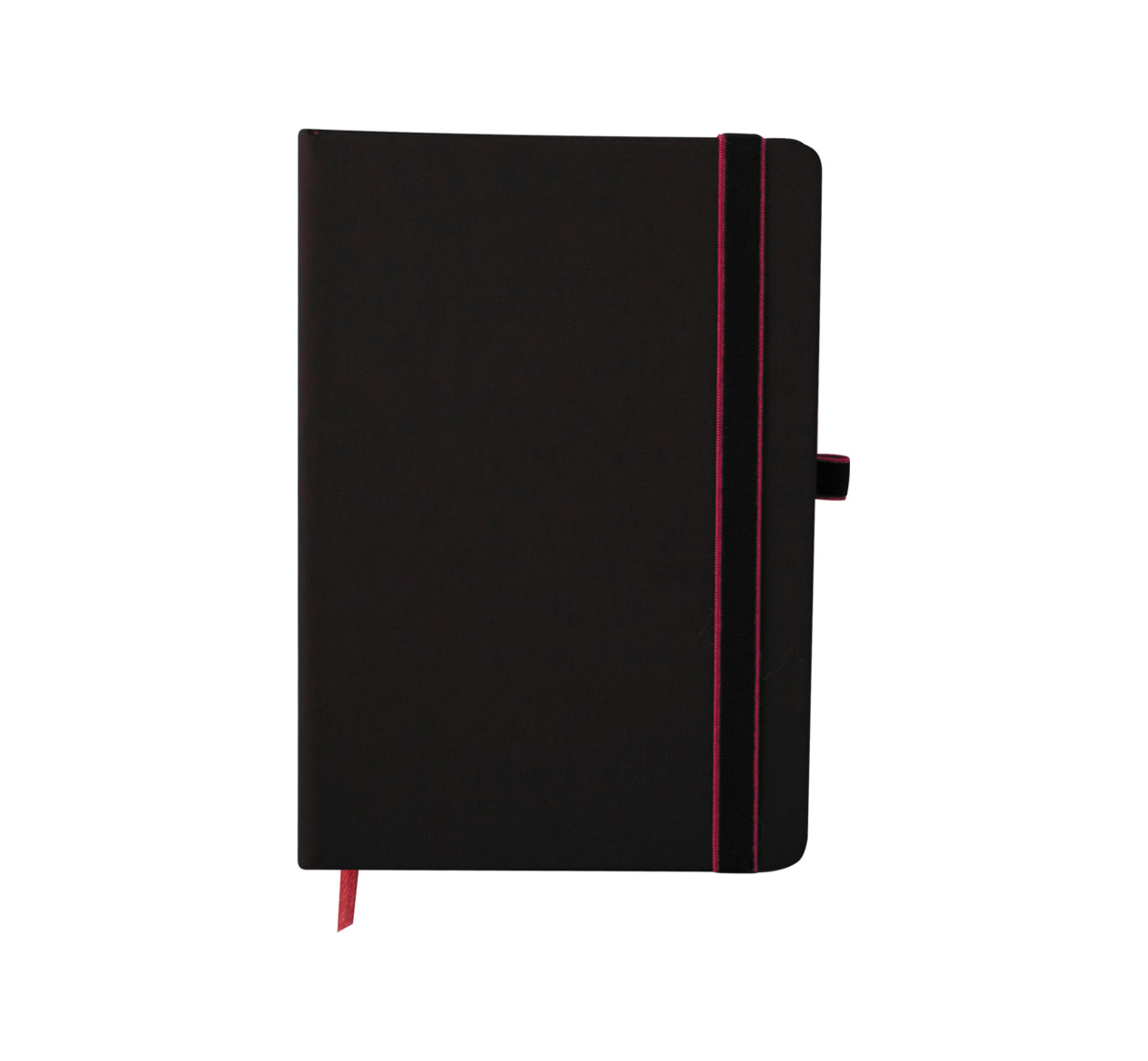 Тефтер A5 с ластик и разделител, 80 листа с редове, цвят на хартията бял с цветен ръб, твърда корица.