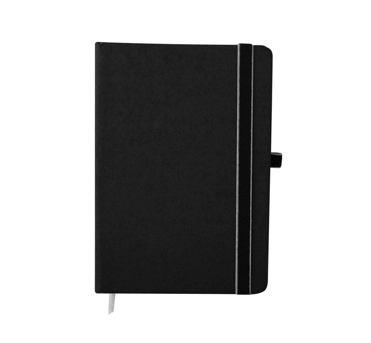 Тефтер A5 с ластик и разделител, 80 листа с редове, цвят на хартията бял с цветен ръб, твърда корица.
