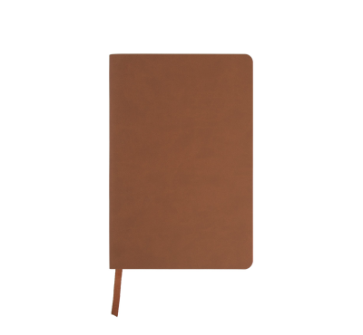 A5 Notebook with flexible thermo PU cover, includes 80 sheets of ivory-colored lined paper, and a matching coloured ribbon.