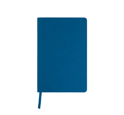 A5 Notebook with flexible thermo PU cover, includes 80 sheets of ivory-colored lined paper, and a matching coloured ribbon.