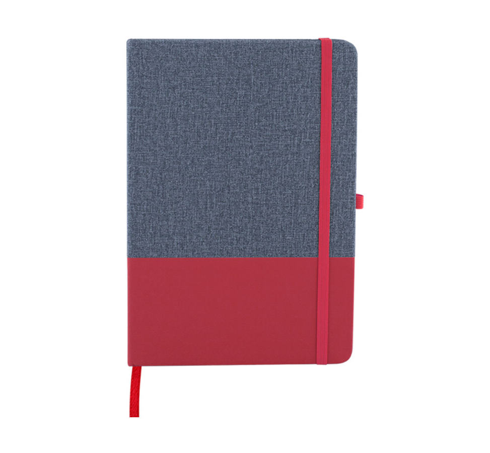 A5 Notebook with soft-feel PU cover, includes 80 sheets of ivory-colored lined paper, a matching coloured elastic closure and ribbon.