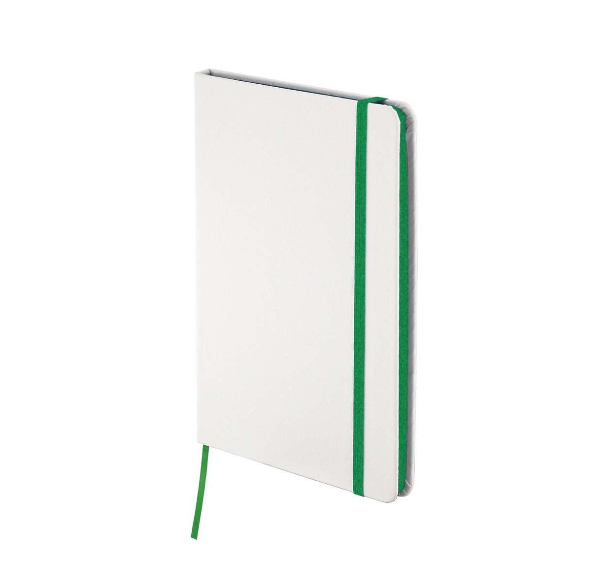 Тефтер A5 с ластик и разделител, 80 листа с редове, цвят на хартията слонова кост с цветен ръб, твърда корица.