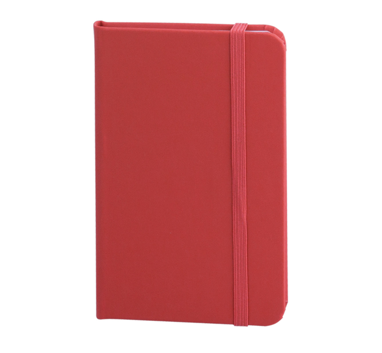 Pocket size notebook with soft-feel PU cover, includes 80 sheets of ivory-colored lined paper, a matching coloured elastic closure, and ribbon.