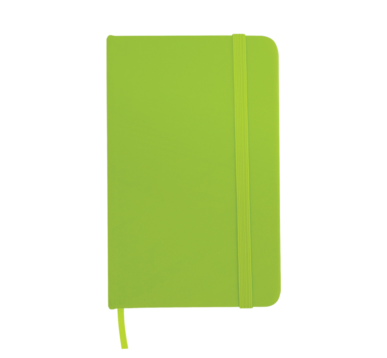 Pocket size notebook with soft-feel PU cover, includes 80 sheets of ivory-colored lined paper, a matching coloured elastic closure, and ribbon.