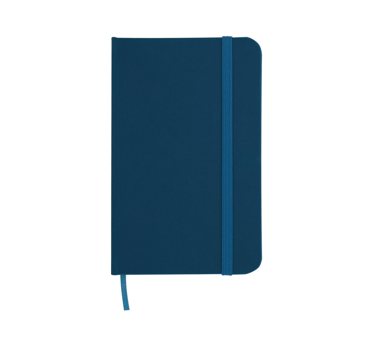 Джобен тефтер с ластик и разделител, 80 листа с редове, цвят на хартията слонова кост, твърда корица.