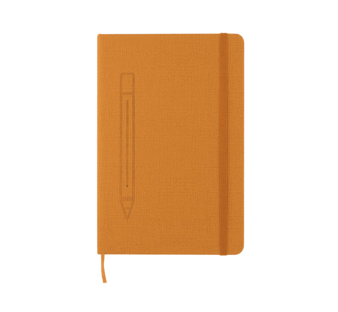 A5 notebook with hardcover and built-in magnet for pen, includes 80