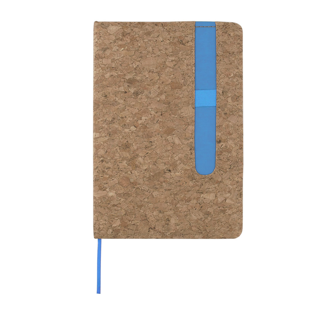 A5 Notebook with natural cork hardcover, includes 80 sheets of ivory-colored lined paper.
