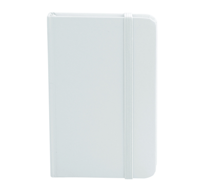 Pocket size notebook with soft-feel PU cover, includes 80 sheets of ivory-colored lined paper, a matching coloured elastic closure, and ribbon.