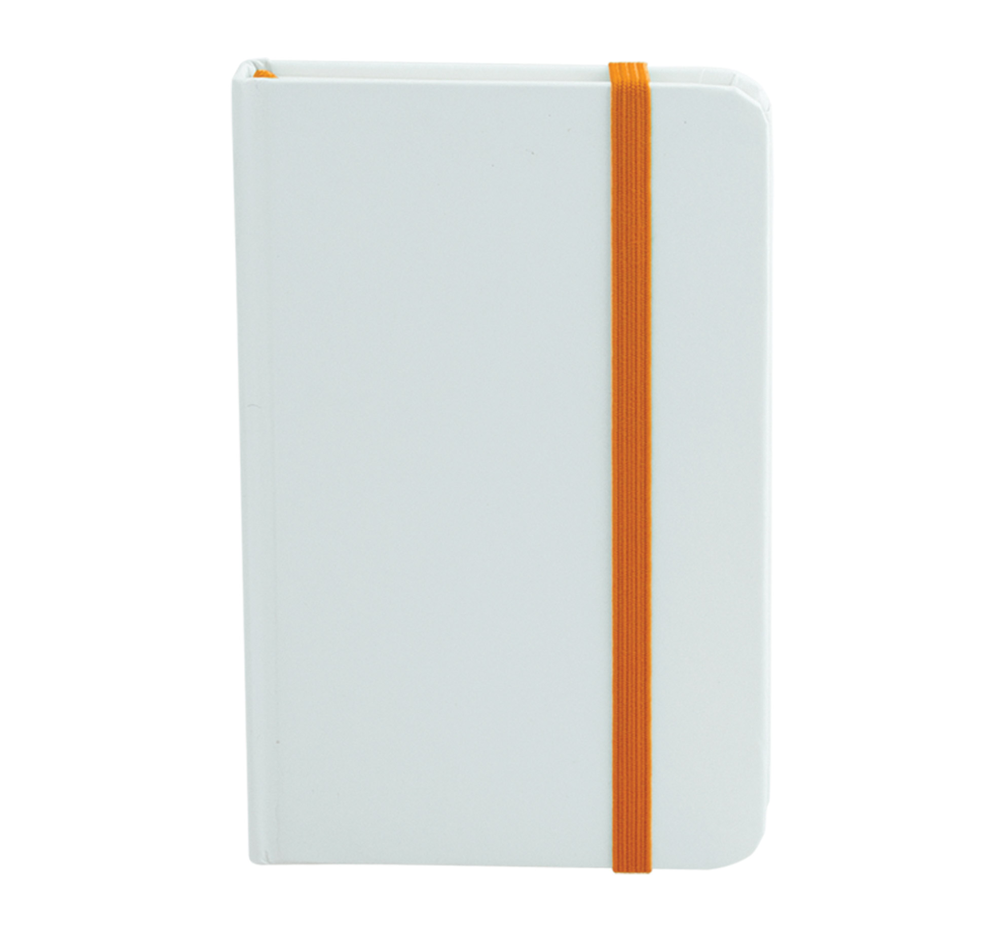 Джобен тефтер с ластик и разделител, 80 листа с редове, цвят на хартията слонова кост, твърда корица.