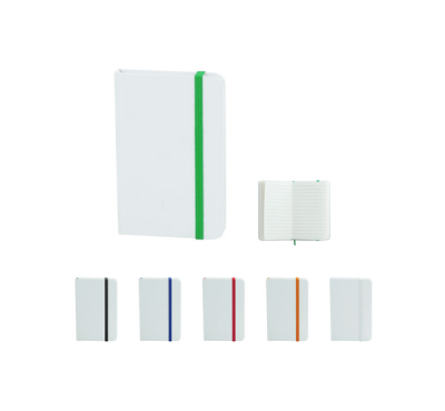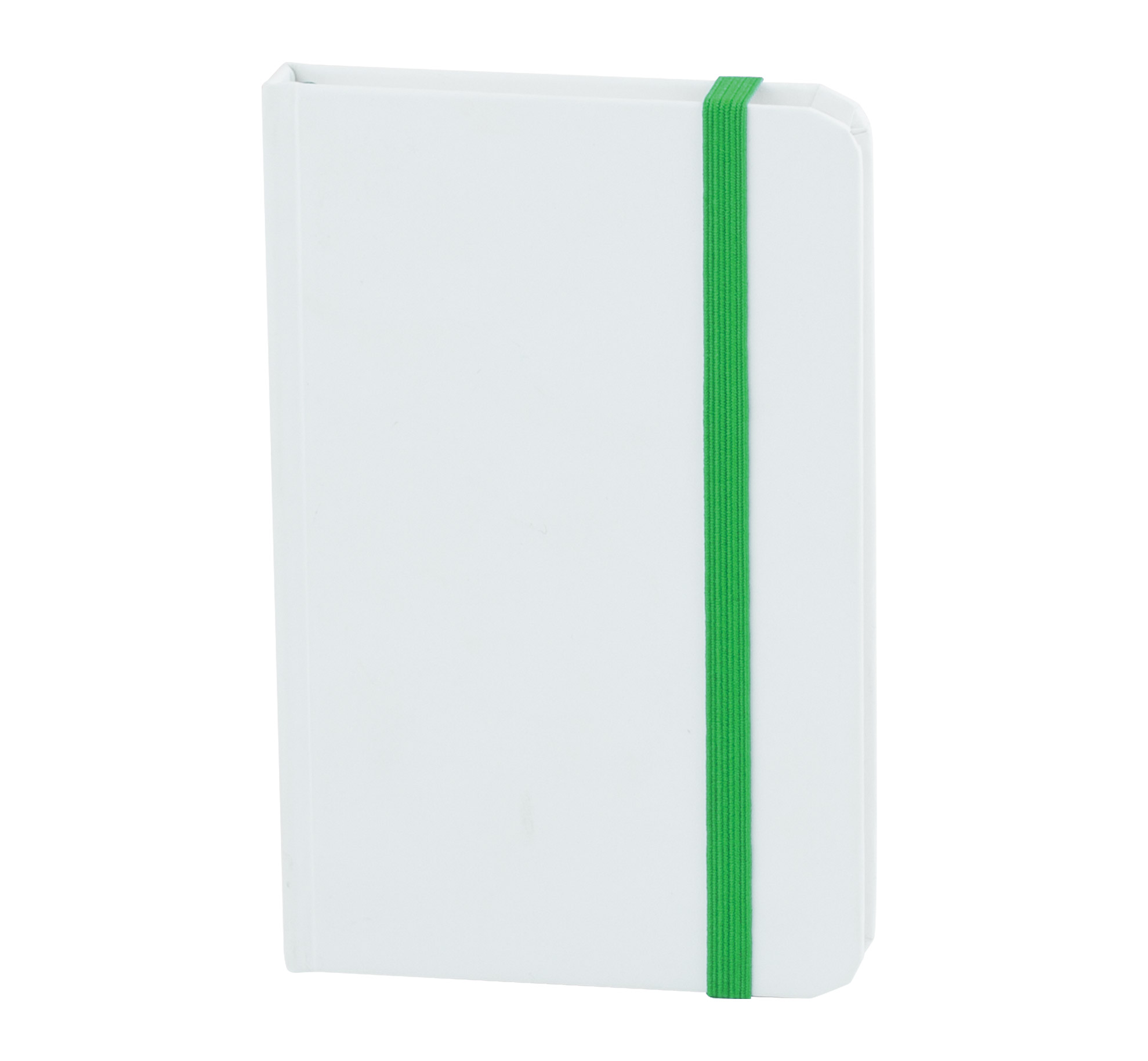 Джобен тефтер с ластик и разделител, 80 листа с редове, цвят на хартията слонова кост, твърда корица.