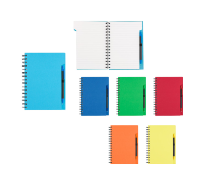 Еко тефтер с еко химикалка, 70 листа с редове, цвят на хартията слонова кост.