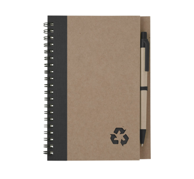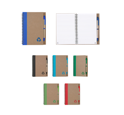 Еко тефтер с еко химикалка, 60 листа с редове, цвят на хартията слонова кост.
