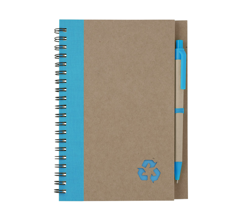 Еко тефтер с еко химикалка, 60 листа с редове, цвят на хартията слонова кост.