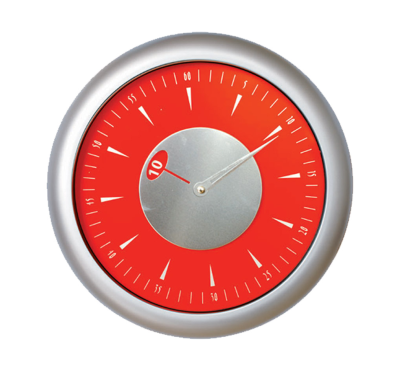Round wall clock with tic-toc system and a frame crafted from plastic.