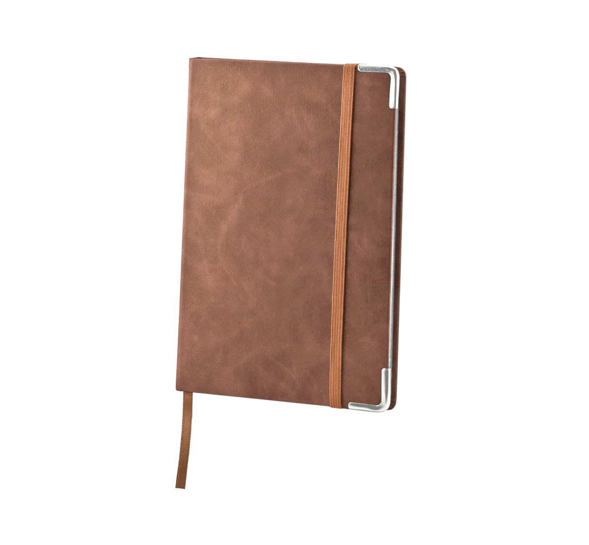 Тефтер A5 с ластик и разделител, 96 листа с редове, цвят на хартията слонова кост със сребърен ръб,