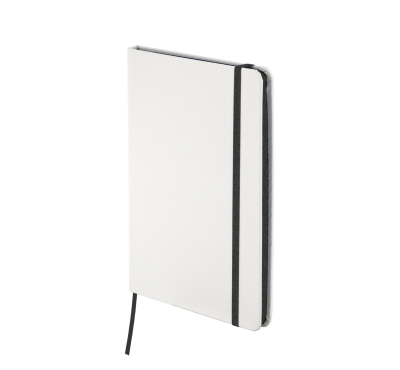 Тефтер A5 с ластик и разделител, 80 листа с редове, цвят на хартията слонова кост с цветен ръб, твърда корица.