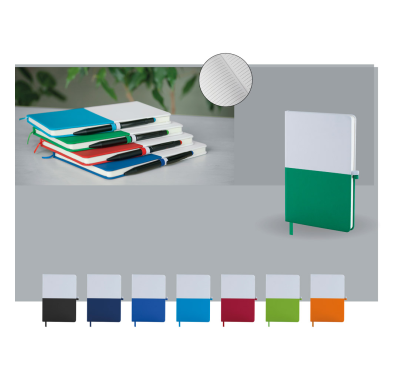 Тефтер A5 с разделител, двоен ластик за закопчаване, 80 листа с редове, цвят на хартията слонова кост, твърда корица.