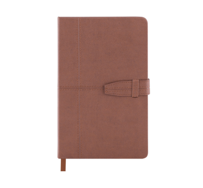 A5 notebook with hard cover, includes 80 sheets of ivory-colored lined paper, and a matching ribbon.