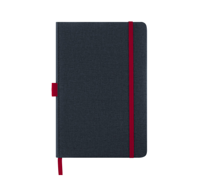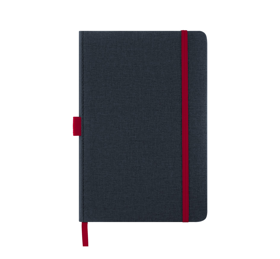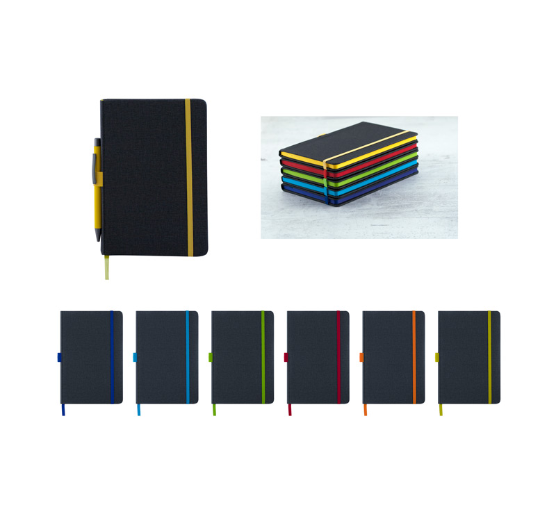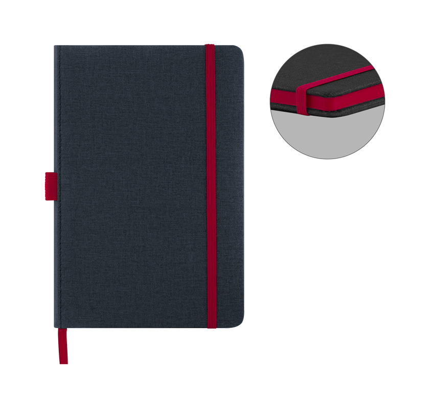 Тефтер A5 с ластик и разделител, 80 листа с редове, цвят на хартията слонова кост с цветен ръб, твърда корица.