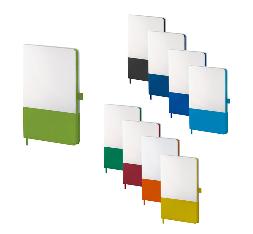 Тефтер A5 с разделител, 80 листа с редове, цвят на хартията слонова кост с цветен ръб, твърда корица.