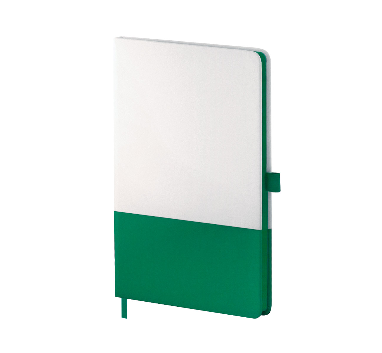 Тефтер A5 с разделител, 80 листа с редове, цвят на хартията слонова кост с цветен ръб, твърда корица.