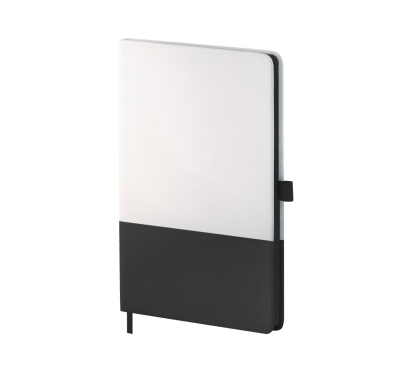 A5 notebook with hard cover, includes 80 sheets of ivory-colored lined paper and matching ribbon.