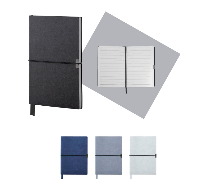 Тефтер A5 с ластик и разделител, 96 листа с редове, цвят на хартията слонова кост, мека корица.