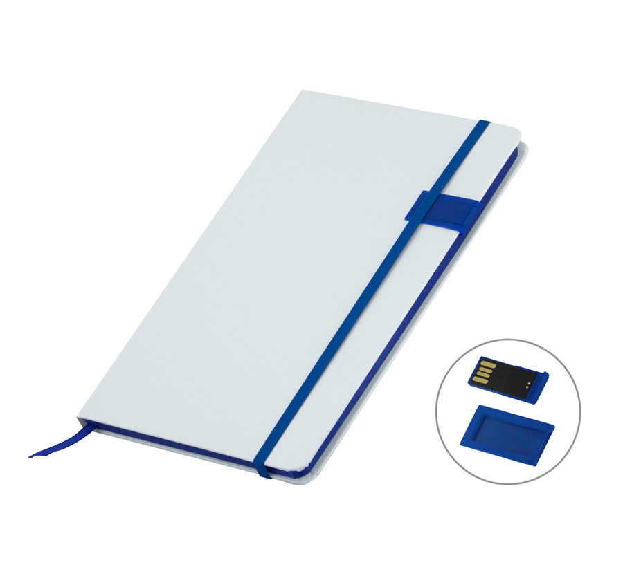 Тефтер A5 с вградено USB 64GB, ластик, разделител, 80 листа с редове, цвят на хартията слонова кост с цветен ръб, твърда корица.