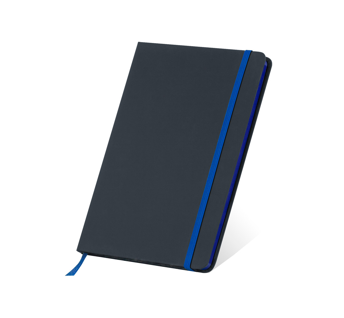 Тефтер A5 с ластик и разделител, 80 листа с редове, цвят на хартията слонова кост с цветен ръб, твърда корица.