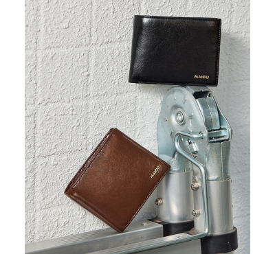 Портфейл с RFID защита, две отделения за банкноти, вътрешни джобове за карти.