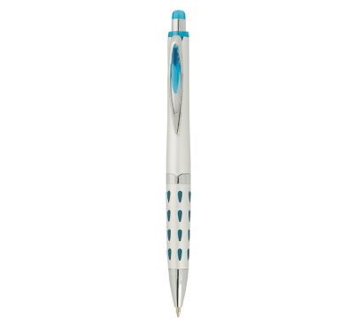 Metal ballpoint pen, plastic Jumbo refill, blue ink.