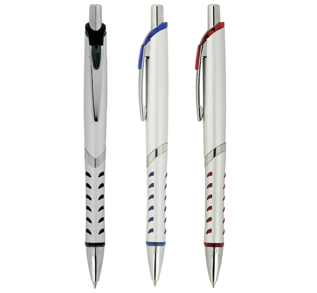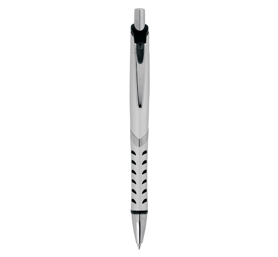 Metal ballpoint pen, plastic Jumbo refill, blue ink.