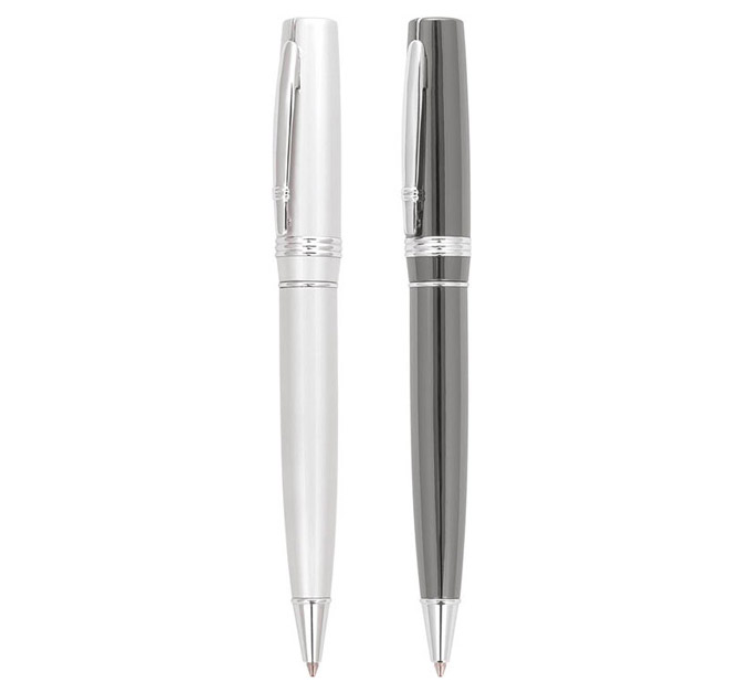 Metal ballpoint pen, plastic Jumbo refill, blue ink.