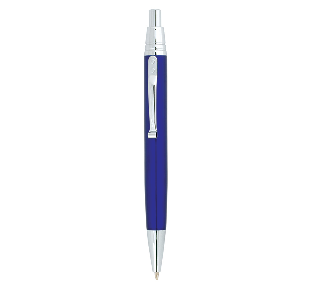 Metal ballpoint pen, plastic Jumbo refill, blue ink.