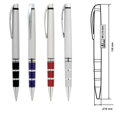 Размер на артикула: Ø10х138 mm. Печатаемо поле: 40х6 mm. Печат: тампонен, ситопечат, гравиране.